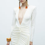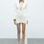 - Deep V neckline