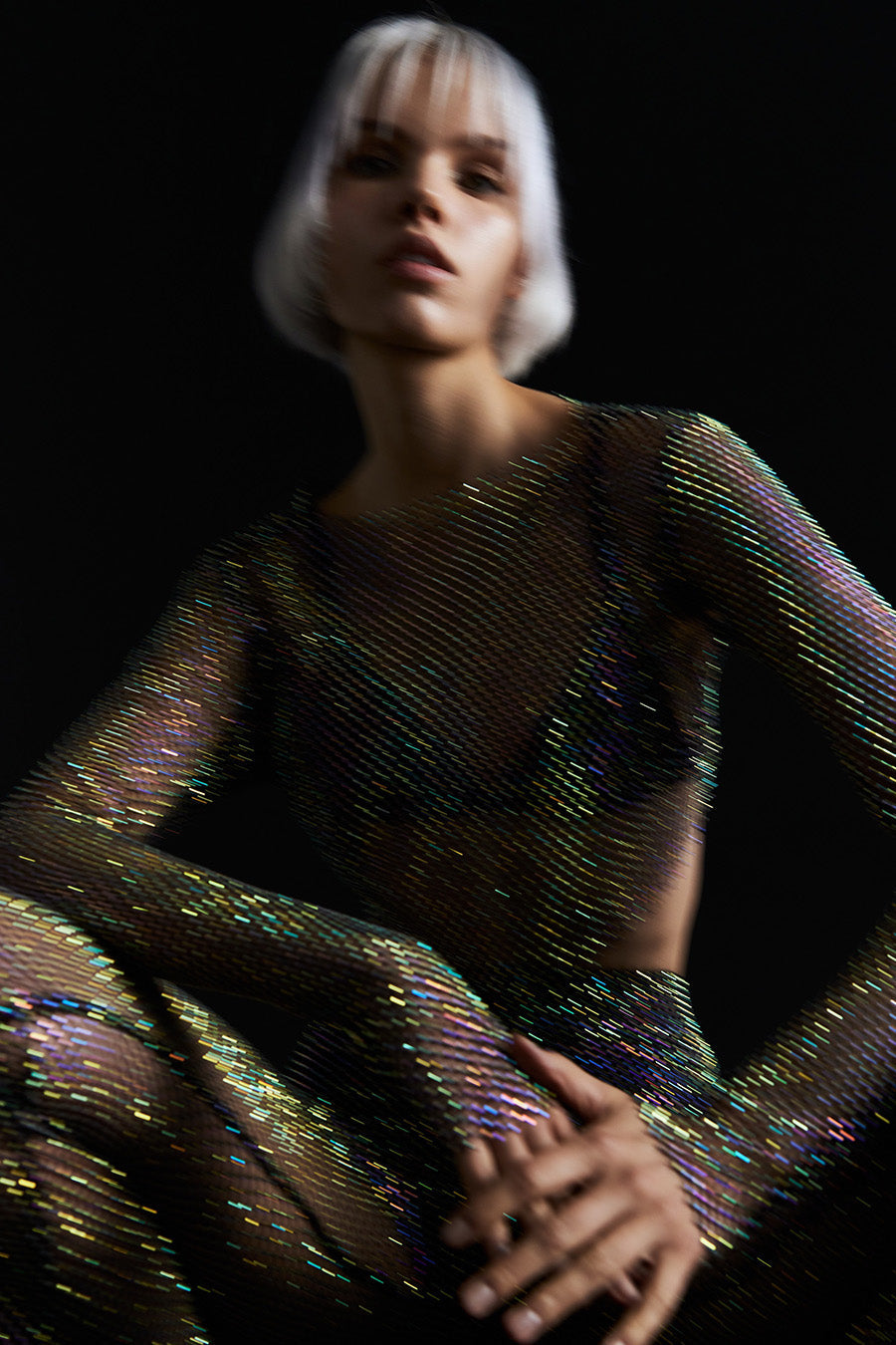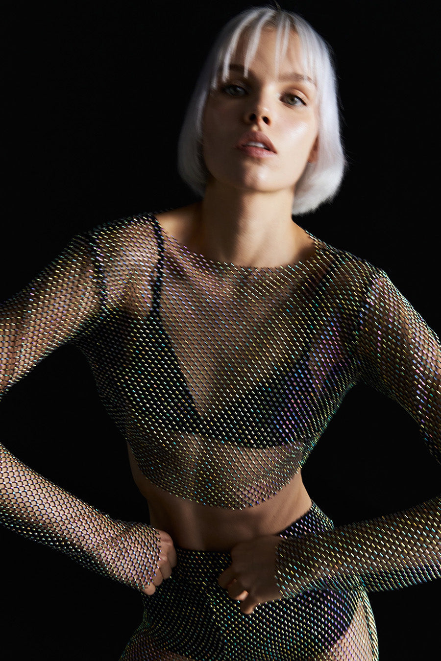 - Tissu résille orné de bijoux