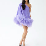 - Détails de la jupe à plumes