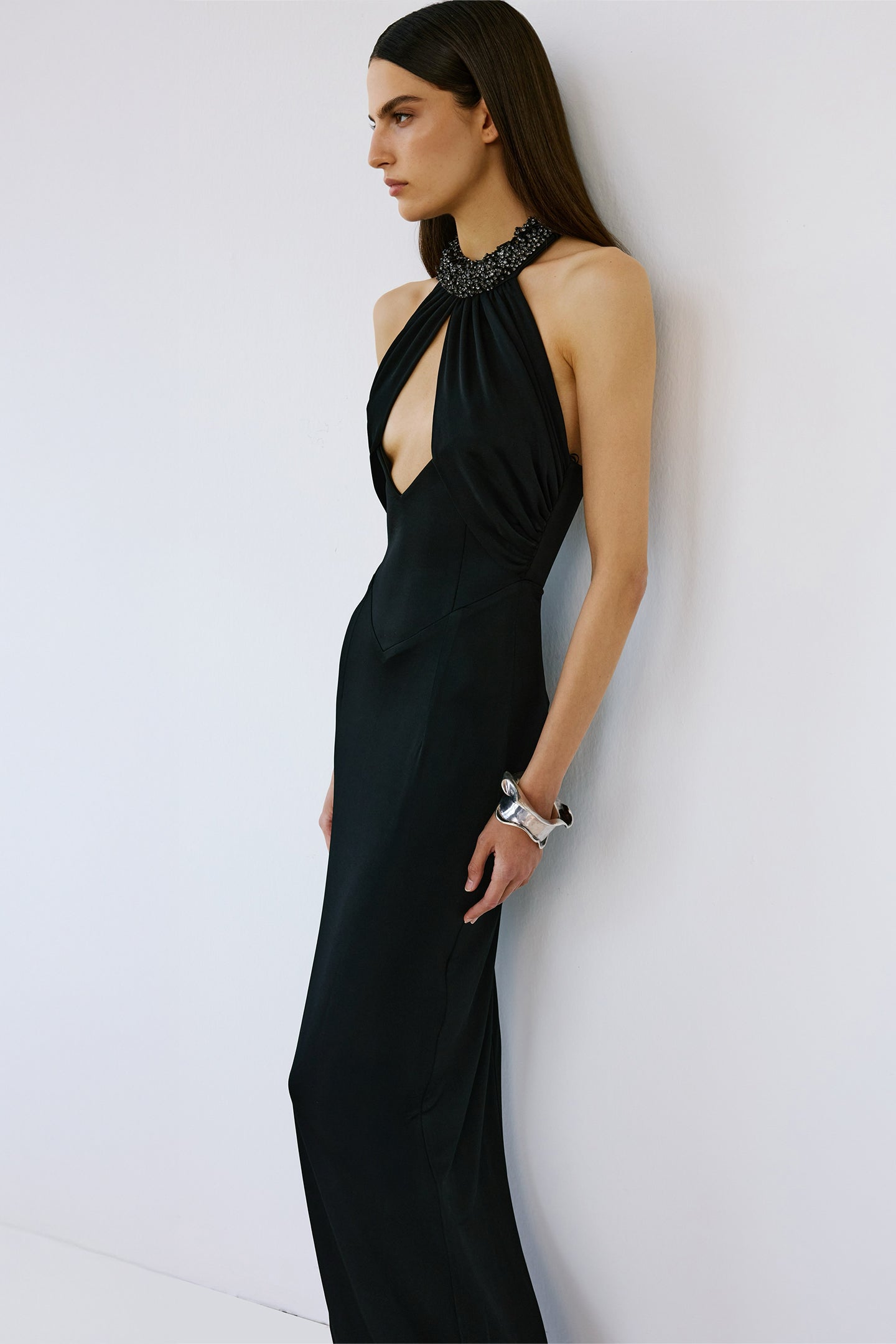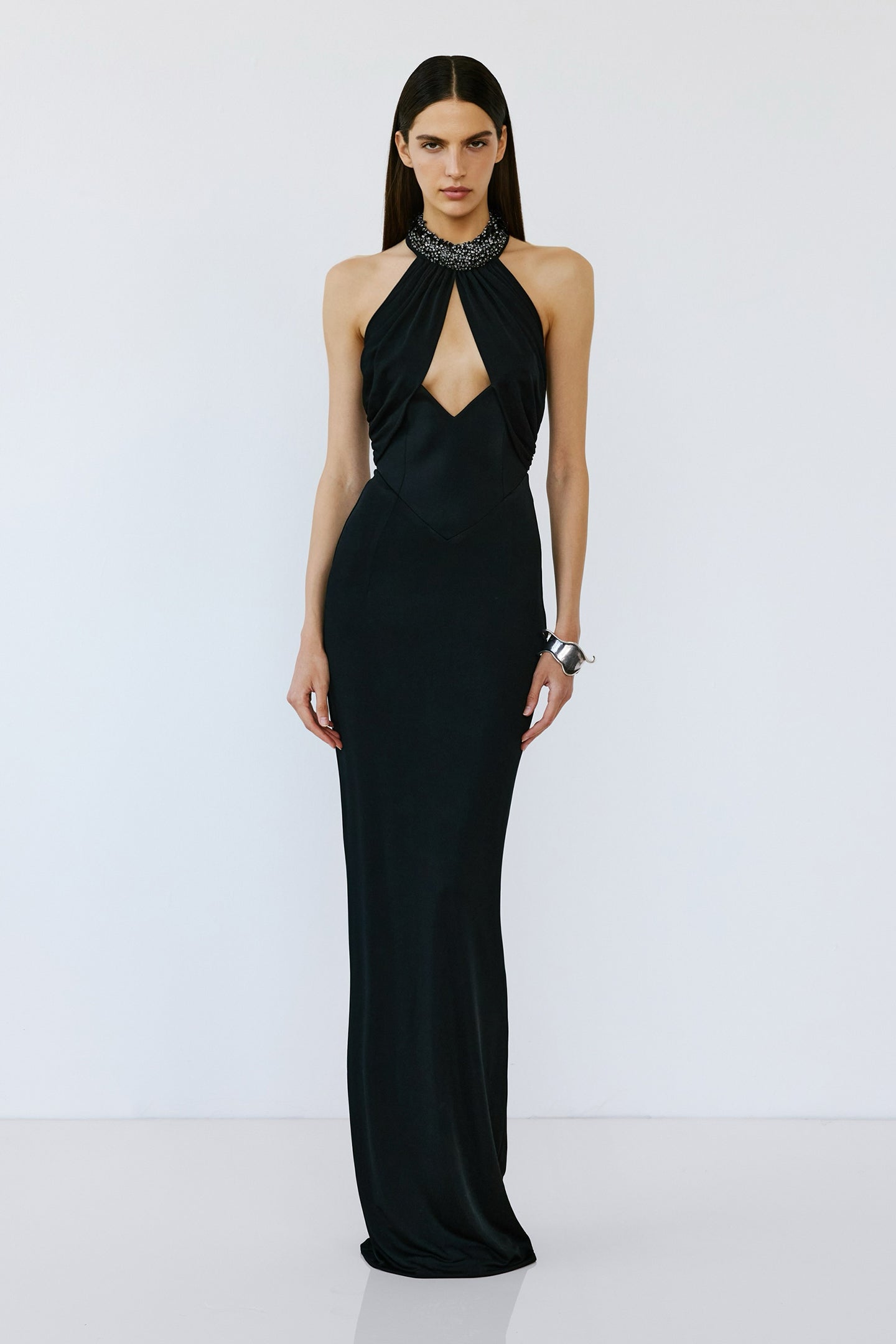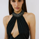 - Stone embellished neckline