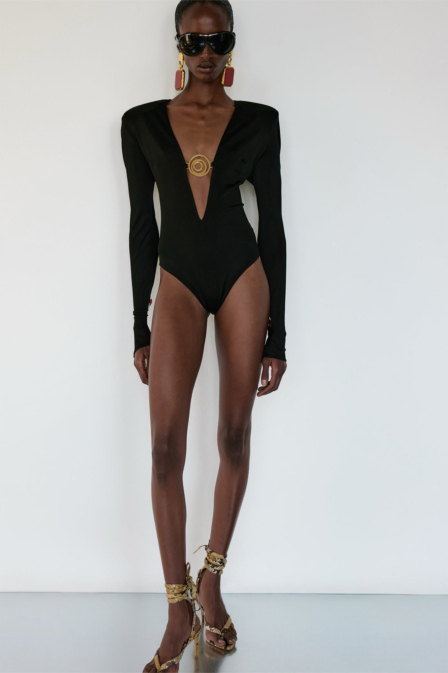 - Padded shoulders and long sleeves