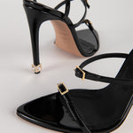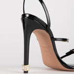 - Dettaglio di cristallo cubo dorato distintivo sul tallone