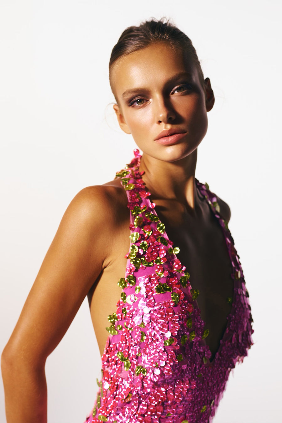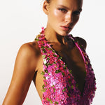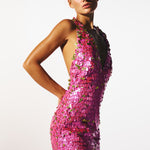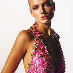 - Tessuto con paillettes ologramma rosa