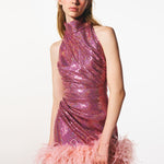 - Tessuto paillettes rosa 100% PES