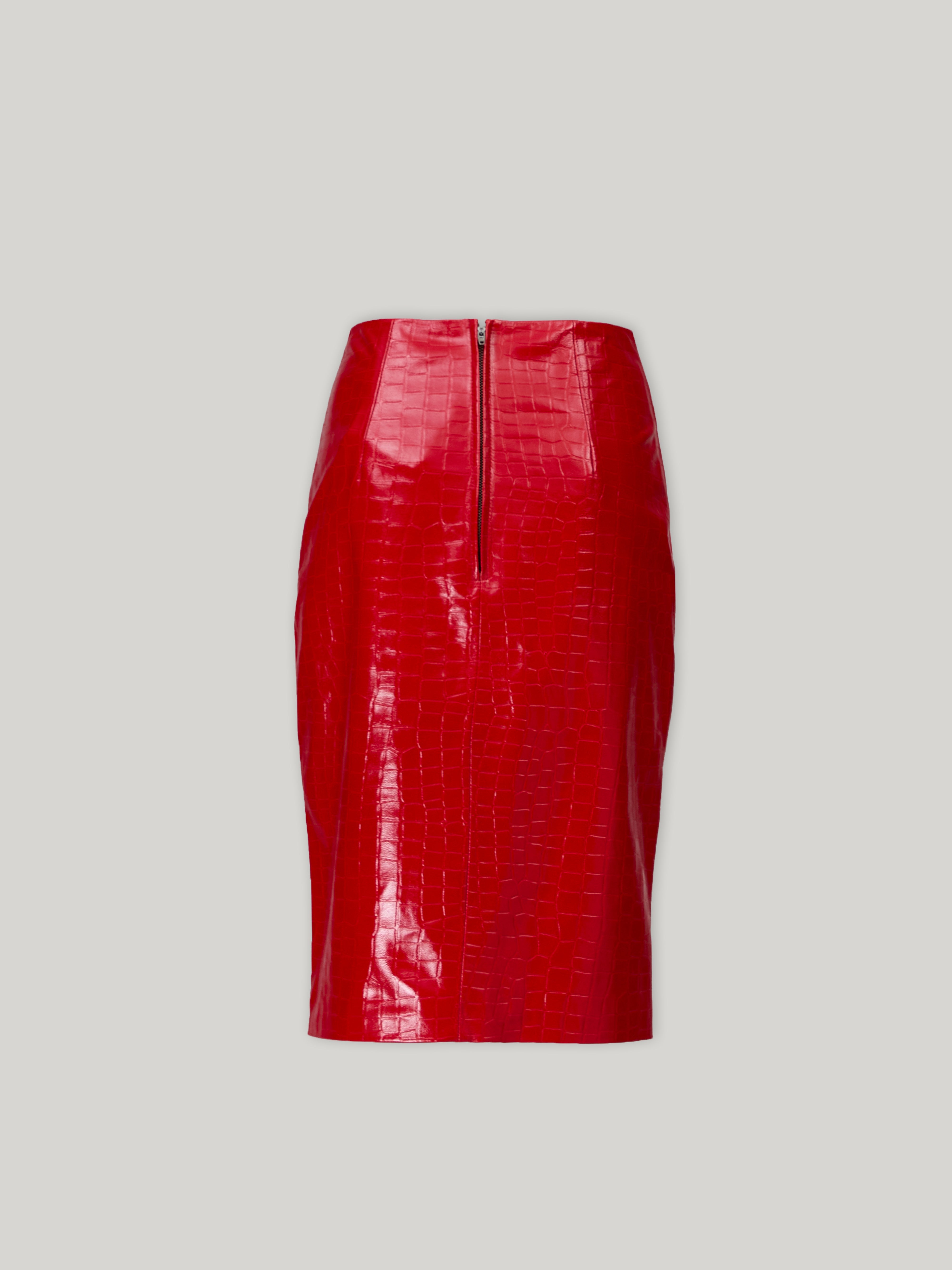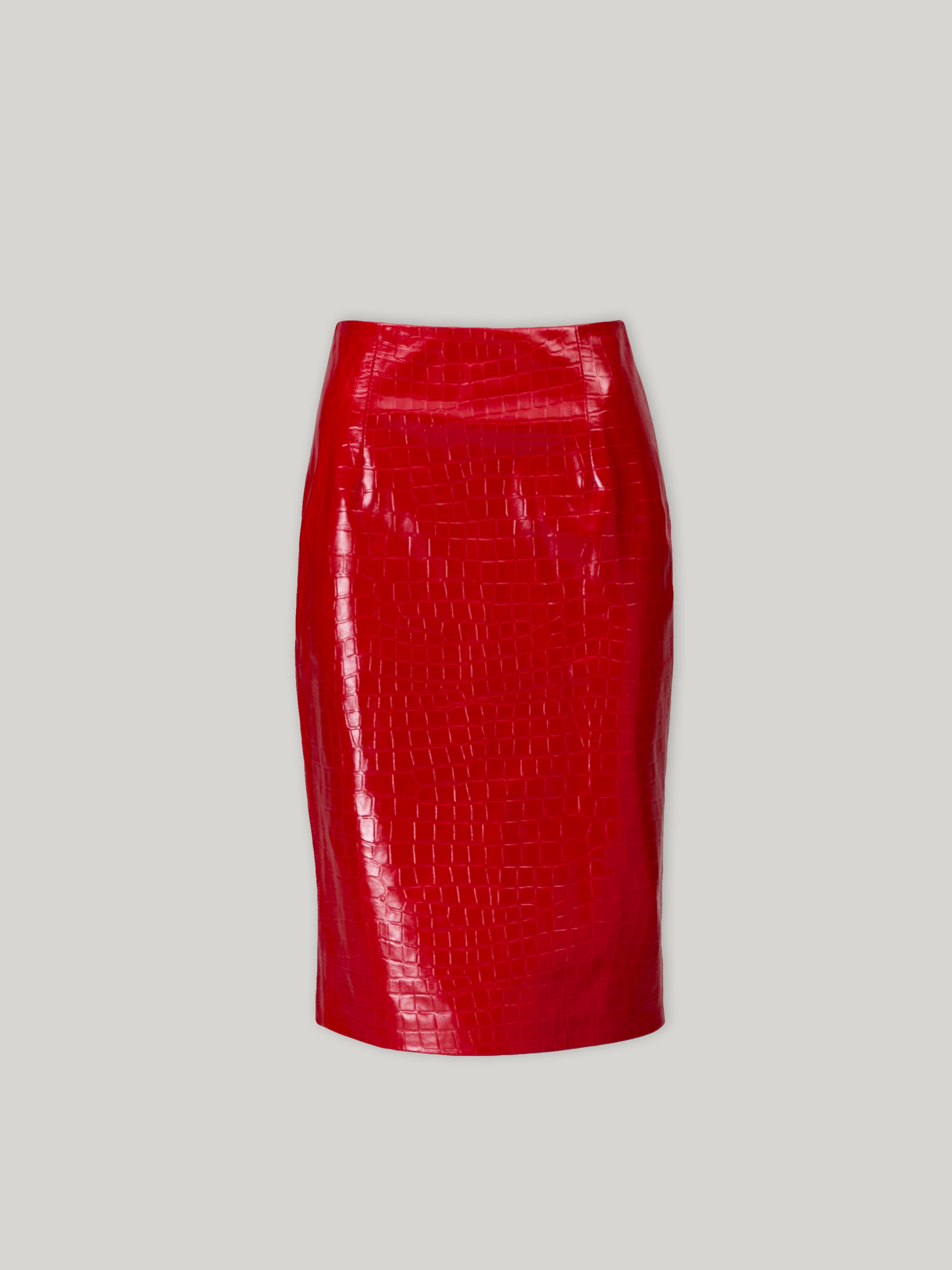 - Below-the-knee pencil skirt