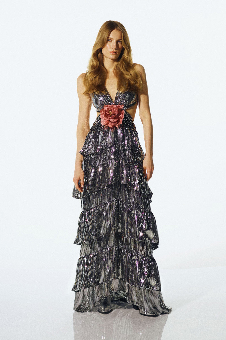 - Tessuto con paillettes argentate