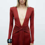 - Deep V-neckline