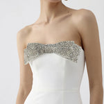 - Handcrafted crystal-embellished bow detail