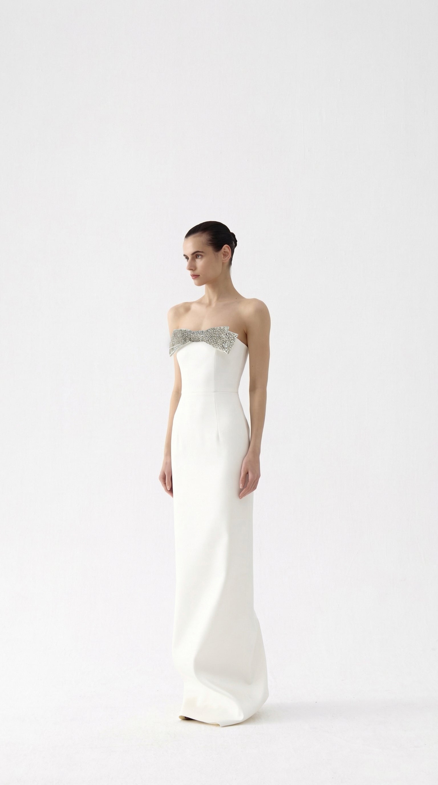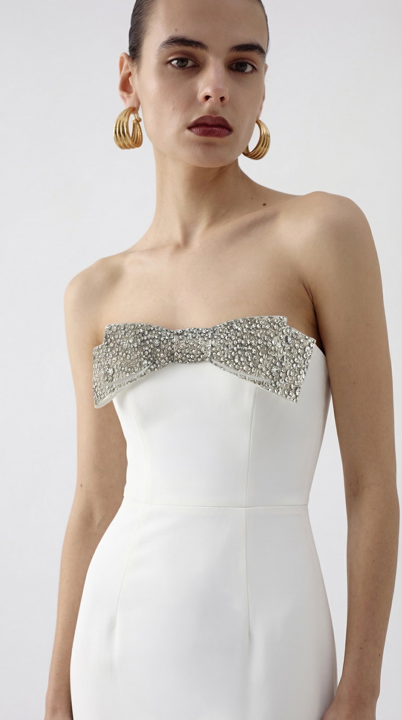 - Strapless neckline