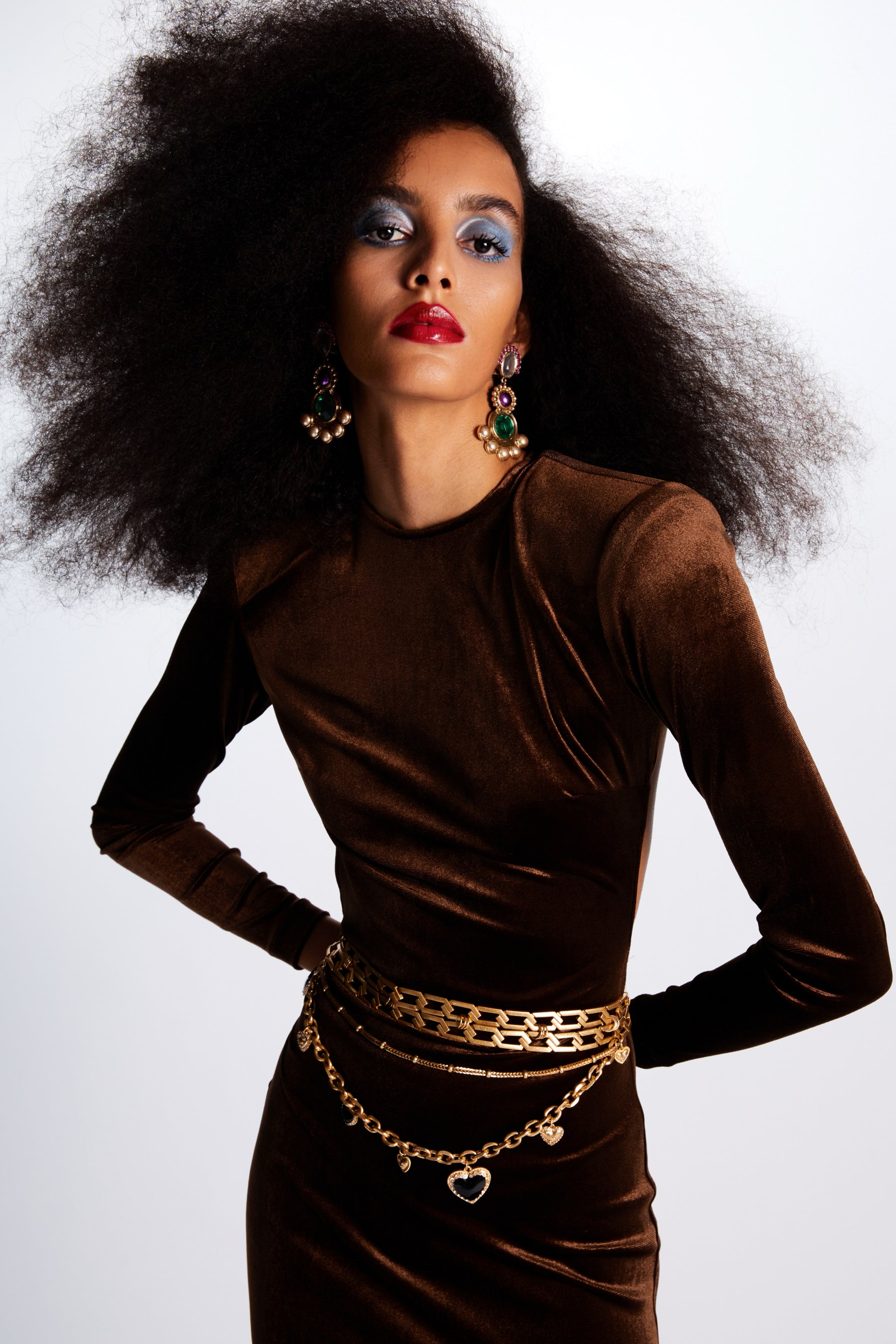 - Maxi dress with gold belt