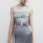 - Strapless, slim fit