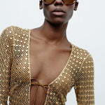 - Deep V neckline