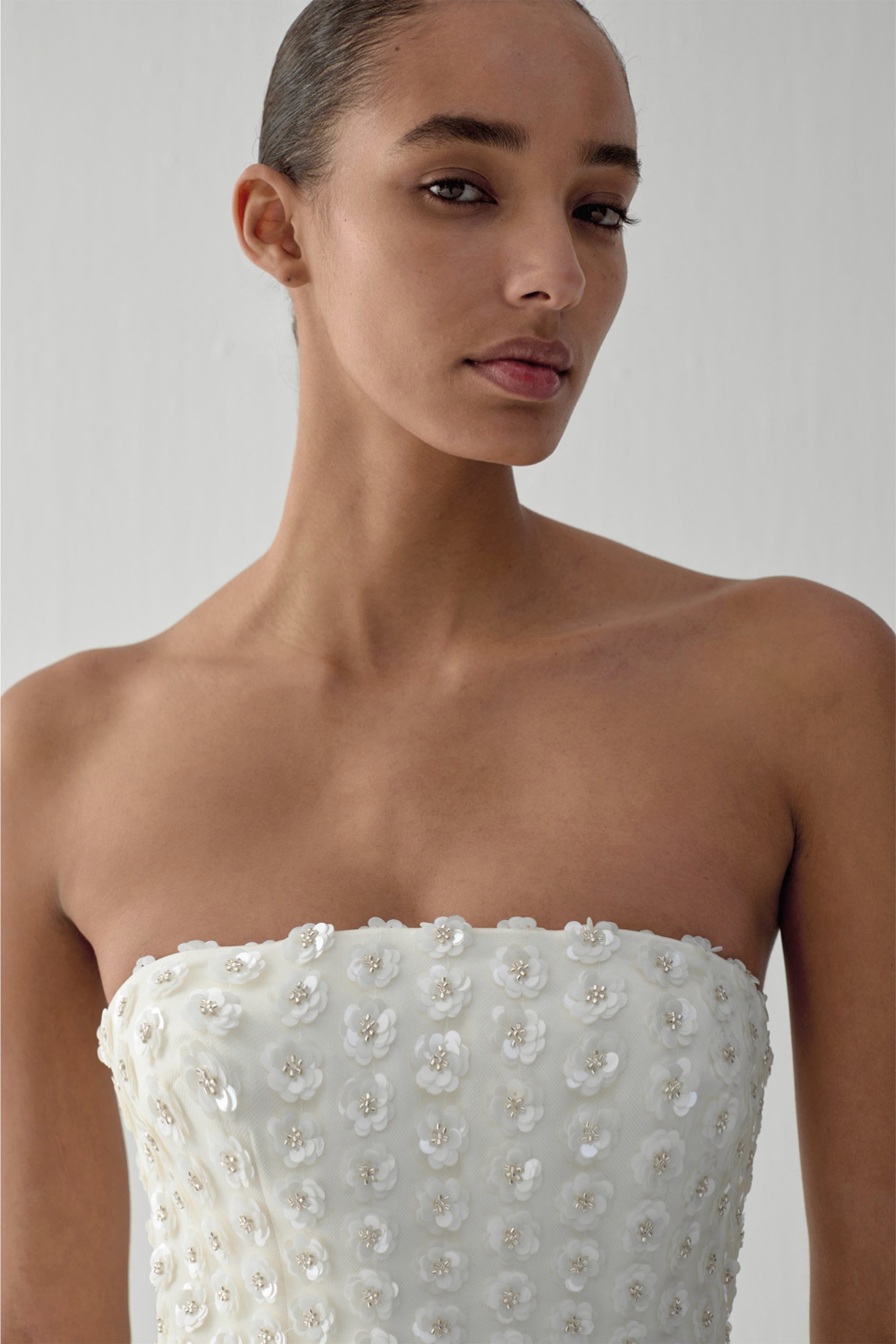 - Strapless neckline