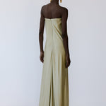 - Deep plunge neckline with soft gathered draping