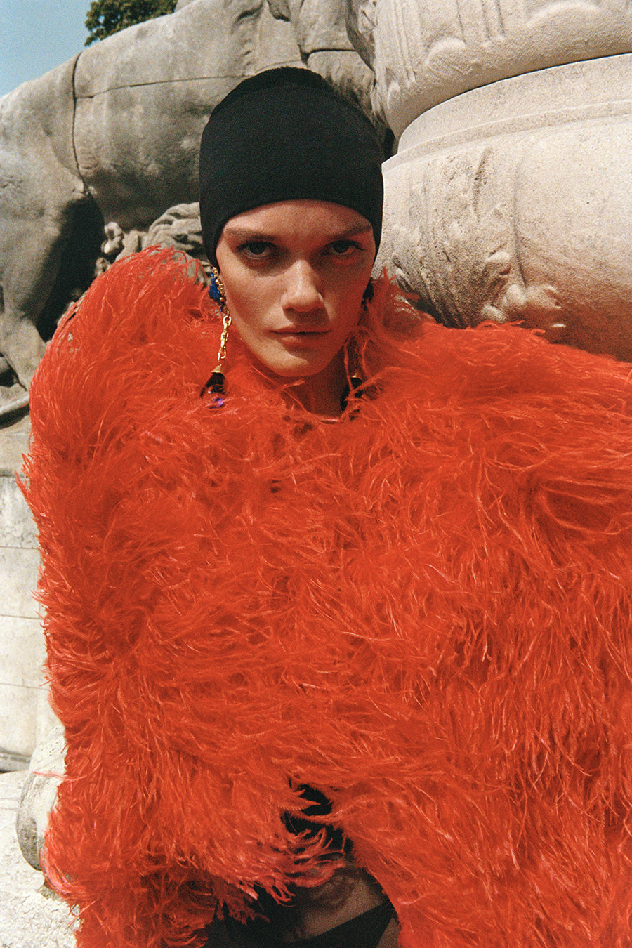 All of the feathers are 100% dyed ostrich feathers. They are produced with full commitment to the framework of sustainable production and are supplied from certified farms. Store in a cool and dry environment. Keep away from water and moisture to avoid discoloration. Since the feathers are not synthetic, it is expected that some amount of shedding will occur. All of the feathers are hand stitched to the dress. Before handing over the dress for dry cleaning, the feathers should be removed and sewn again after the dress has been cleaned.